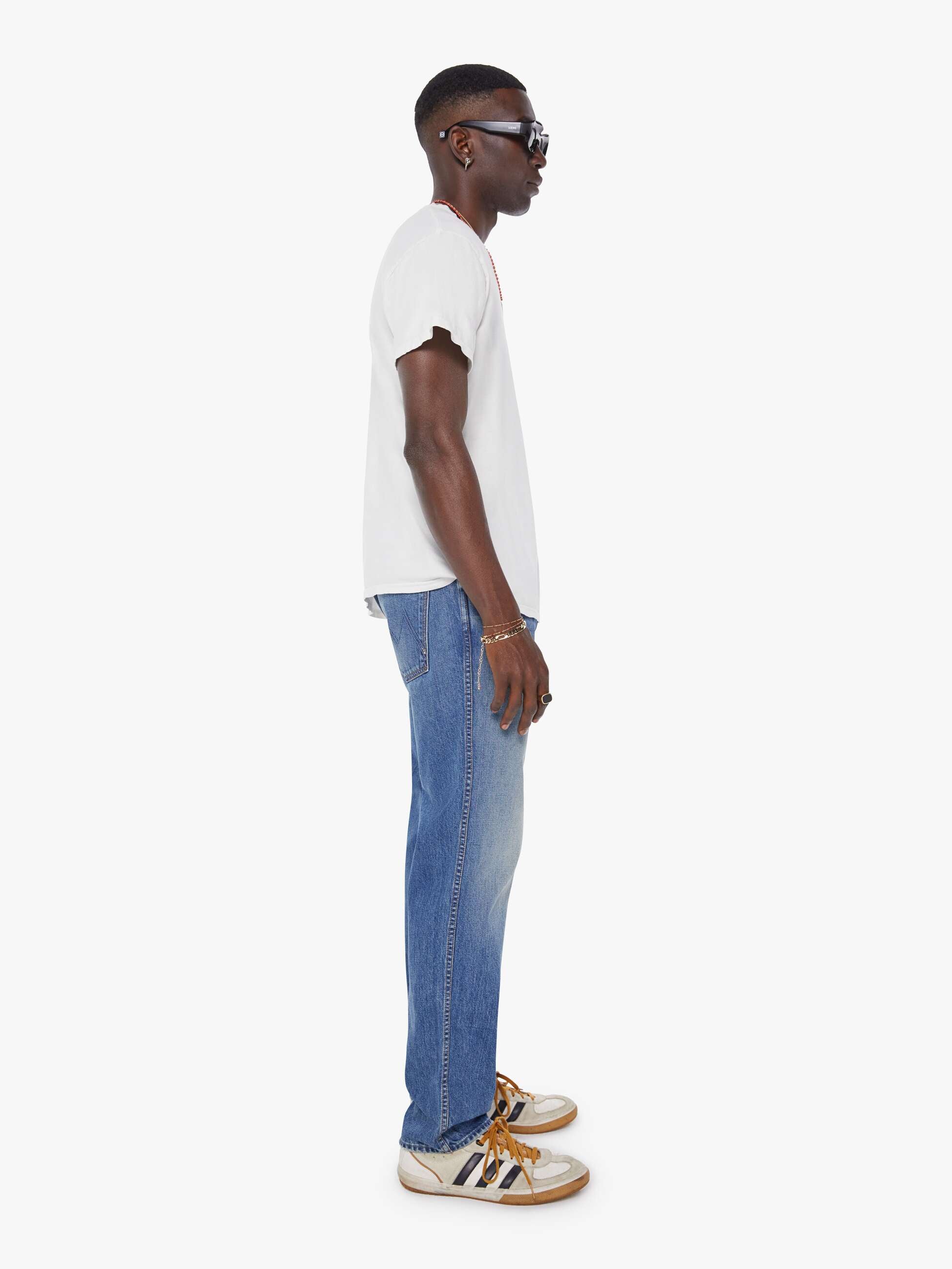 Done deal. A straight-leg jean with a mid rise, zip fly, 30-inch inseam and a clean hem. Made from 100% cotton denim, Cashing Out is a mid-blue with whiskering and fading at the knee.
