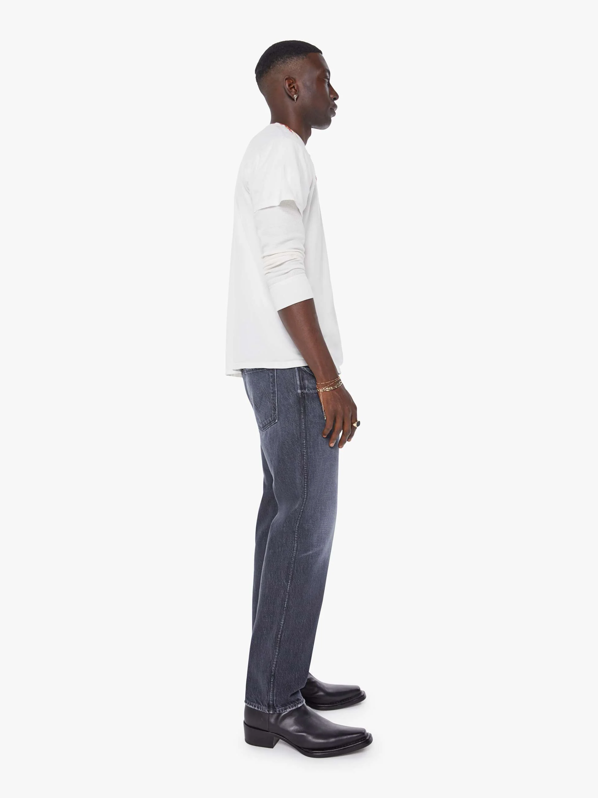 That's a wrap. A straight-leg jean with a mid rise, zip fly, 30-inch inseam and a clean hem. Made from 100% cotton denim, The Final Curtain is a dark blue-grey with whiskering and fading at the knee.